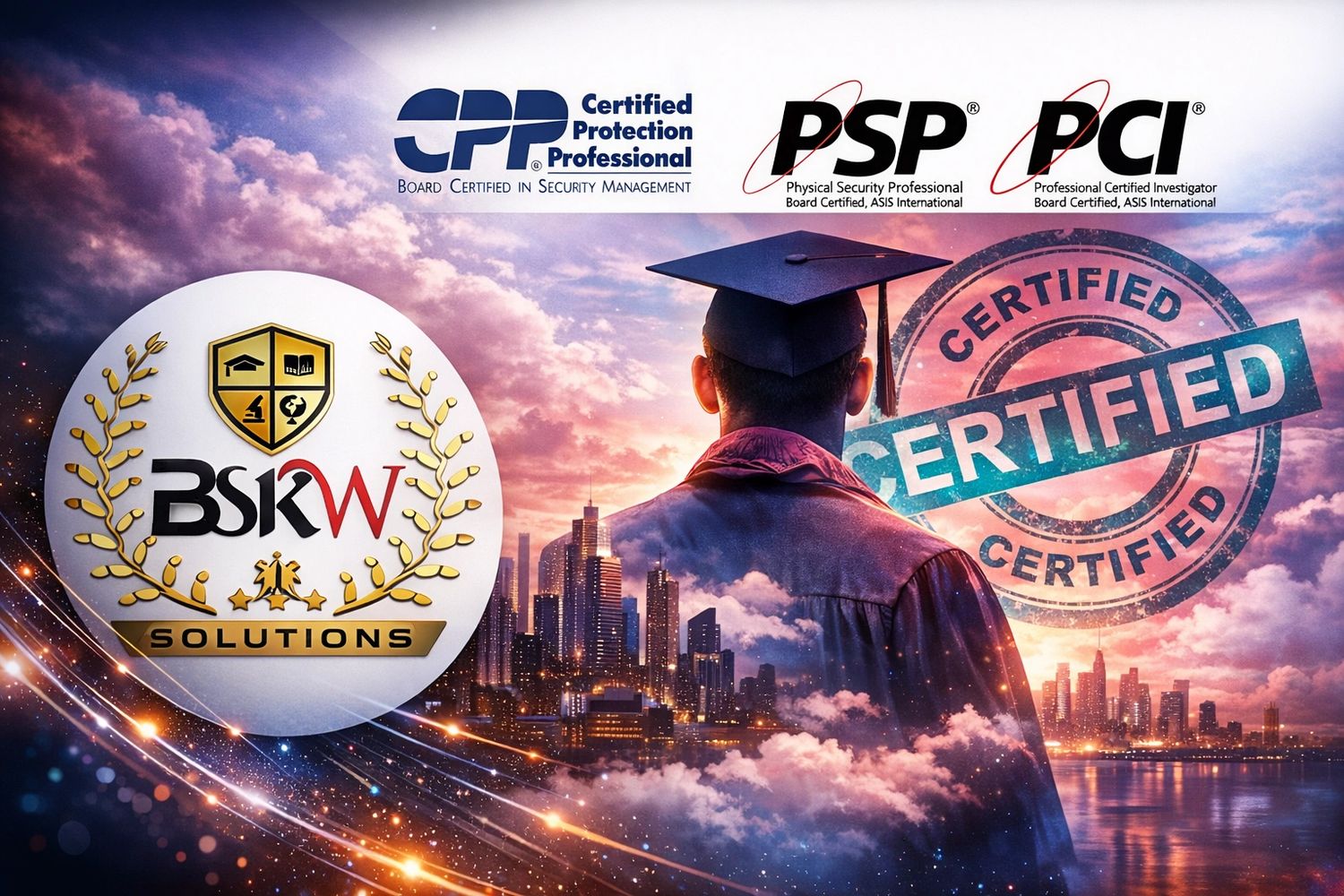Whether you are aiming for globally recognized certifications such as Certified Protection Professional (CPP), Physical Security Professional (PSP), Professional Certified Investigator (PCI), or Risk Management Professional (RMP), BSKW Solutions is here to support you at every stage of your journey.